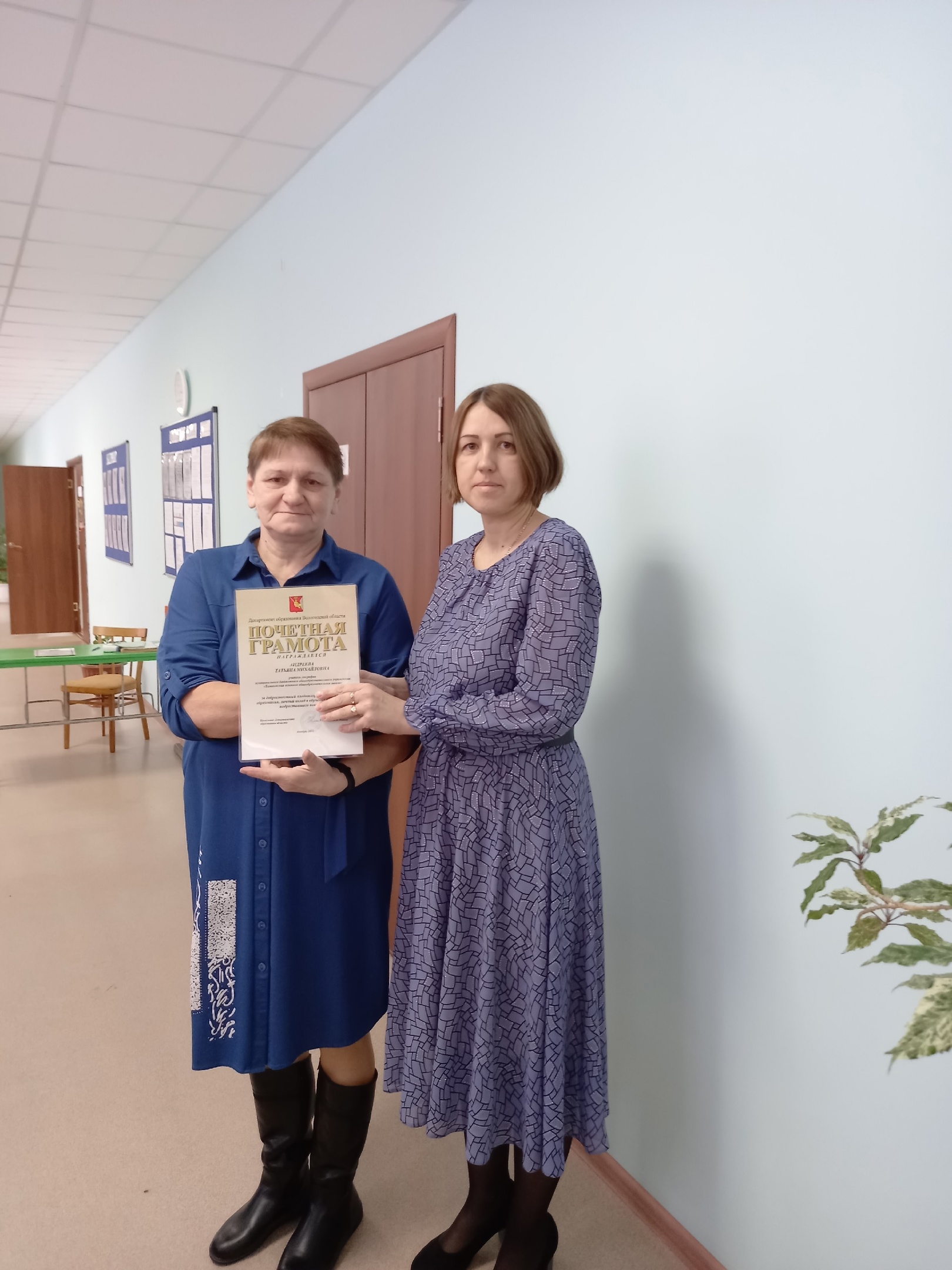 1) Почётная грамота Главы Бабушкинского муниципального района за большой личный вклад в дело обучения и воспитания подрастающего поколения, профессионализм и многолетний плодотворный труд (Постановление от 18.08.2014 г. № 447).